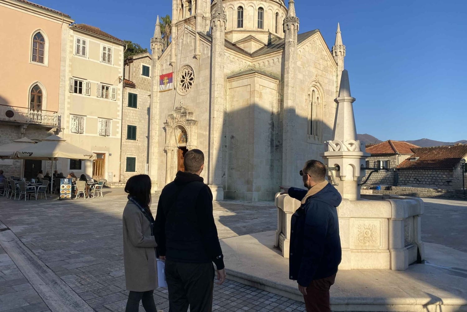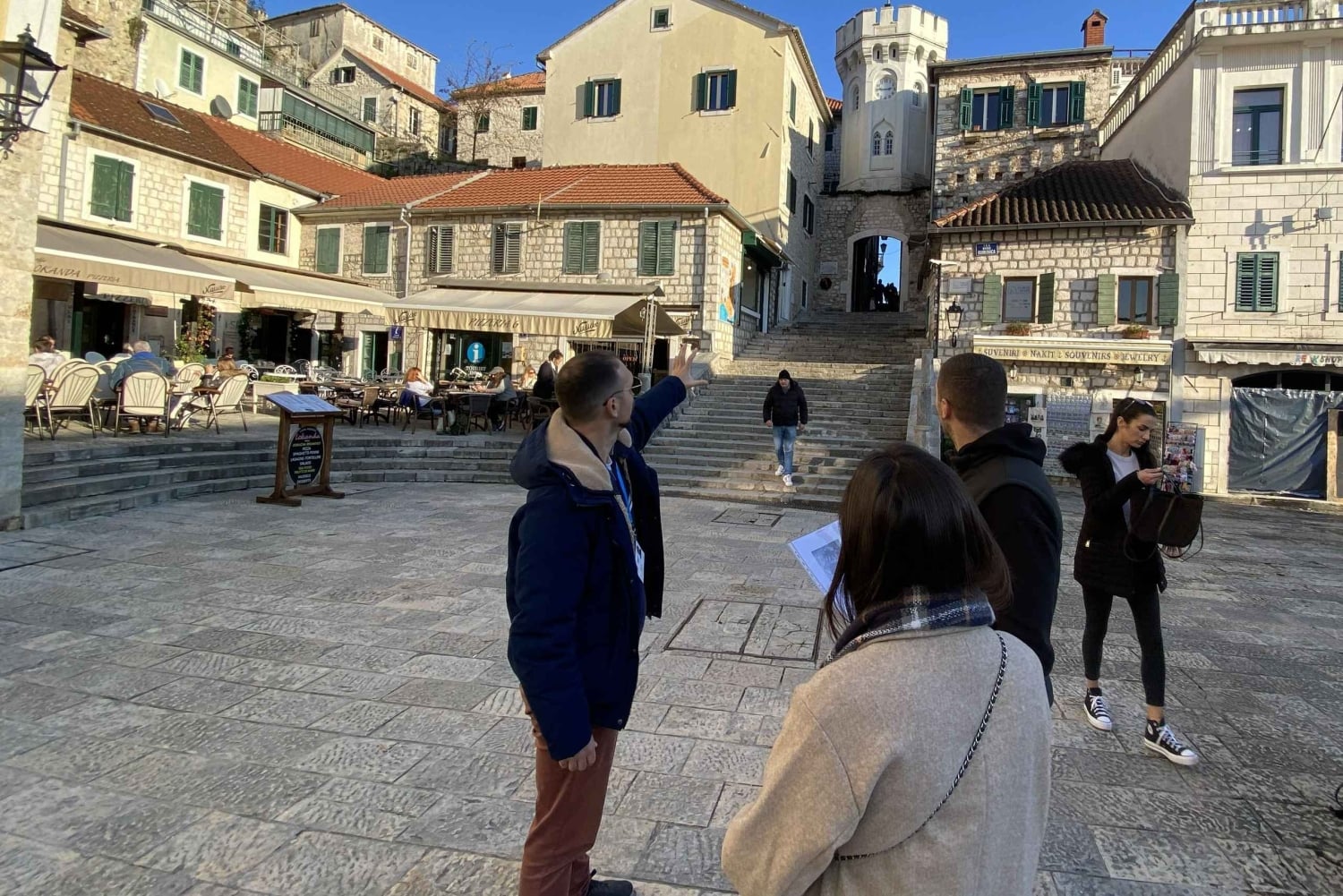 Our journey begins in front of the City Hall, setting the stage for an exploration of local governance and grand architecture. From here, we enjoy a peaceful stroll by the Saint Leopold Mandić Park and pass the legendary City Tavern, a landmark of local social life. We then step onto the historic, stone-paved street that lead us to the bustling heart of the town: Nikola Đurković Square. Here, you will stand beneath the iconic Clock Tower (Sahat Kula), the gateway to the upper old town.