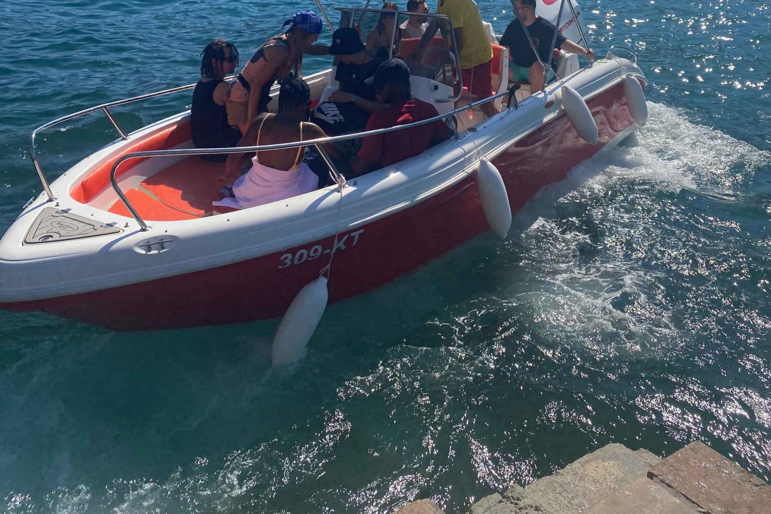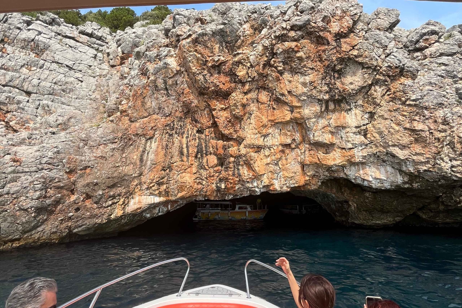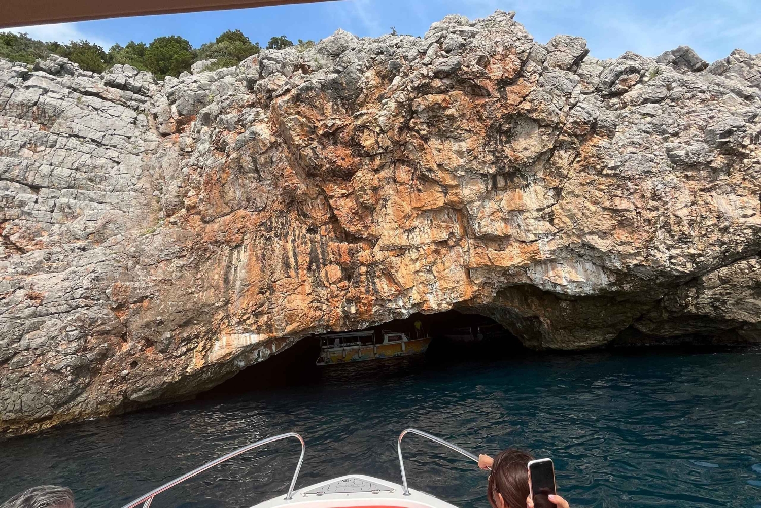 Explore the Bay of Kotor by speedboat, swim in the blue cave on a private or group tour, stop at the Lady of the Rocks, and admire the views of Perast, the submarine tunnel and Mamula Island.