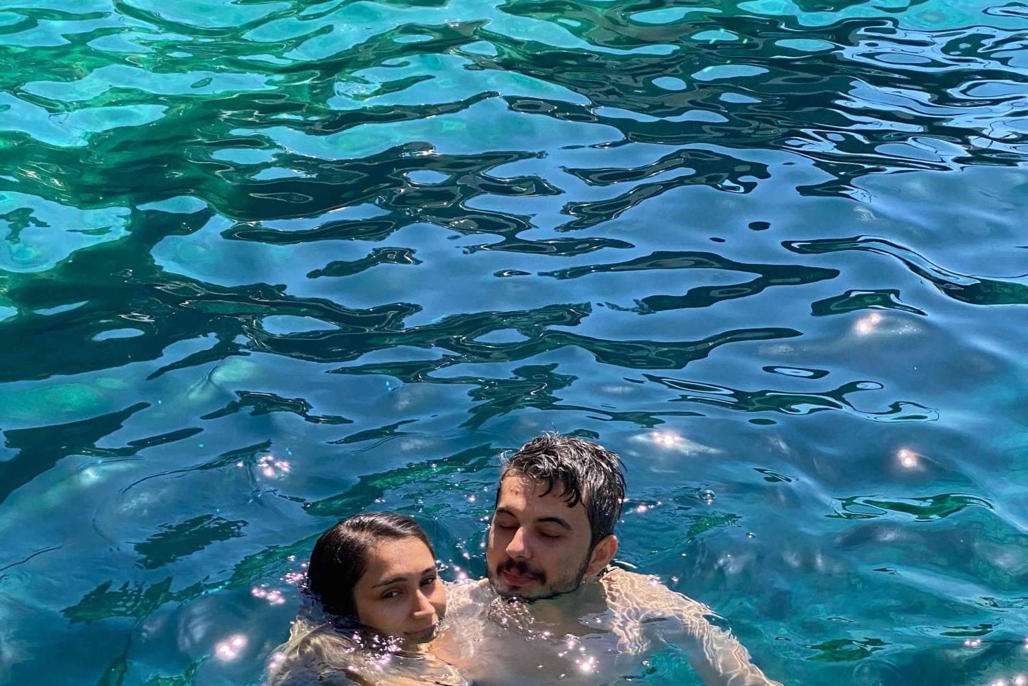 - Marvel at the ethereal shades of blue in the crystal-clear waters of the cave