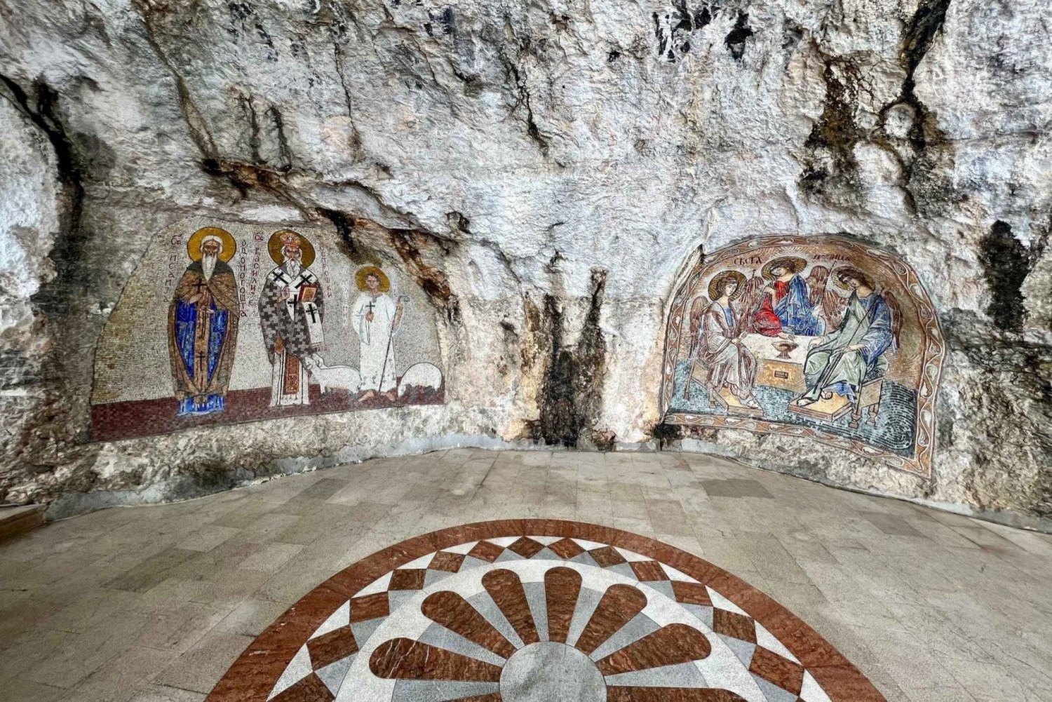 Experience the miracle of Monastery Ostrog on a day trip with private transportation from Tivat. See the sacred place that visited by millions of people every year and learn its unique historical significance to the Montenegrin people. Ostrog Monastery is the largest Montenegrin Orthodox sanctuary and the most important religious site in Montenegro. Built in 17th century, this miraculous place is embedded in a vertical cliff face 900m above sea level and, consists of the Lower Monastery with the Church of The Holy Trinity and the Upper Monastery. Travel inside the caved church to dedicated to Saint Basil of Ostrog, the Metropolitan Bishop of Herzegovina and founder of the Monastery, where his remains are still kept today. Admire the fresco painted walls and pay your respects to the small alter guarded by priests standing as a prayerful sentinel.